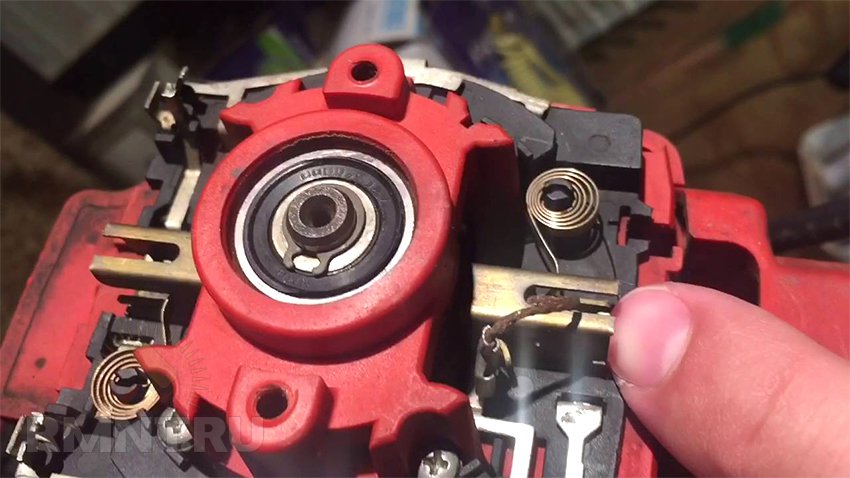 - Слабый прижим щеток. При длительных режимах болгарки пружины перегреваются и могут “отжигаться”, теряя при этом упругость.