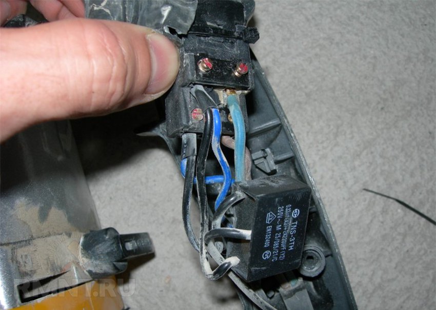 При помощи индикатора напряжения убедиться, что ток поступает на коллектор двигателя и кнопку пуска.