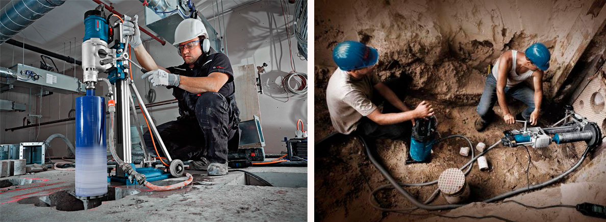 Чаще всего эксплуатируется алмазный инструмент при сверлении несущих стен и перекрытий, для прокладывания электрических кабелей. Например, при: