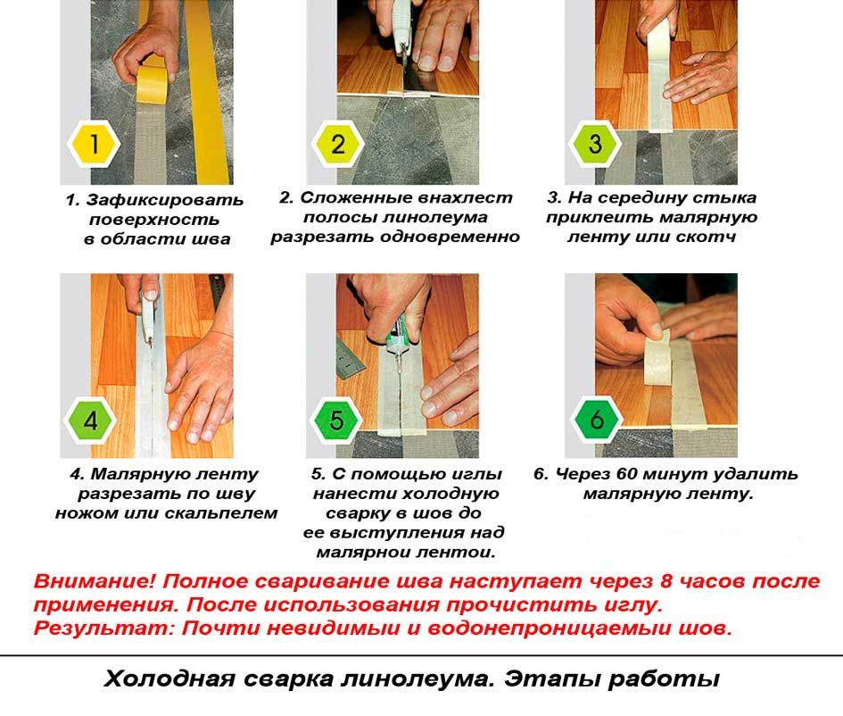 Холодная сварка линолеума — этапы работы