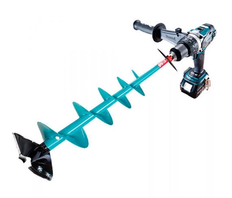 Такой агрегат, оснащённый ДВС, поможет пробурить отверстие даже в плотном грунте. Изготовление дыр в необходимом количестве происходит довольно легко, а земля вокруг них остаётся плотной. Добиться такого результата лопатой невозможно. В продаже встречаются как профессиональные, так и облегчённые устройства, которые вполне подходят для решения задач на бытовом уровне. Компоненты аппарата: