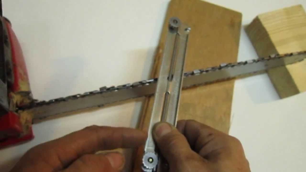 Заточка цепи с использованием шаблона не требует демонтажа пильной гарнитуры, давайте рассмотрим этот процесс более подробно: