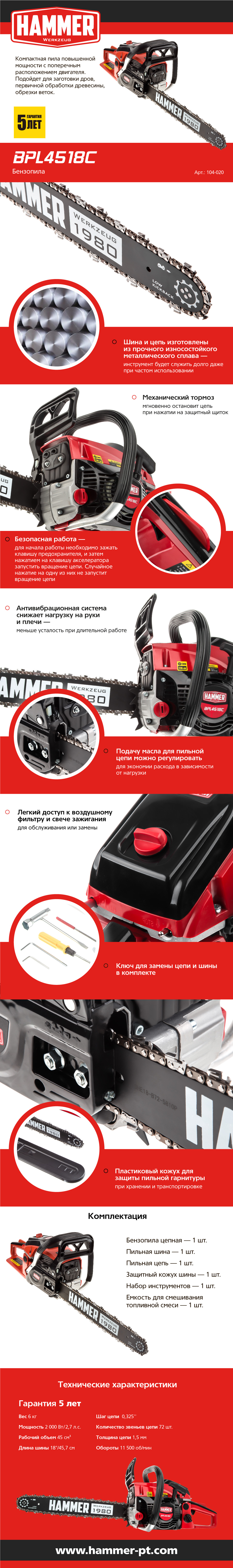 Бензопила HAMMER BPL4518C