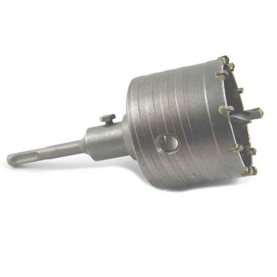 Существуют еще такой вид насадок, как буровые коронки. Основным предназначением которых является сверление отверстий в бетоне. Это обусловлено тем, что обычно максимальный размер буров, рекомендуемых для домашнего перфоратора(SDS+), составляет до 32 мм в диаметре. Коронки выпускаются различных диаметров и состоят из хвостовика, рабочей области в виде чаши с зубьями, а также направляющего сверла. Направляющее сверло предназначается для того, чтобы в процессе бурения изделие не перемещалось, тем самым получая более точное отверстие. Зубья чаши изготавливаются из победита или из напыляются алмазной крошкой, что позволяет сверлить гранит и железобетон. Коронки предназначаются преимущественно для сверления отверстий под установку электрических устройств: выключателей, розеток и коробок.