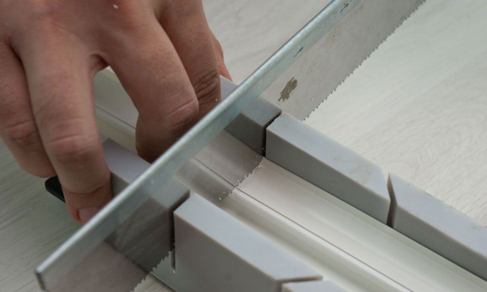 Резка напольного плинтуса при помощи стусла