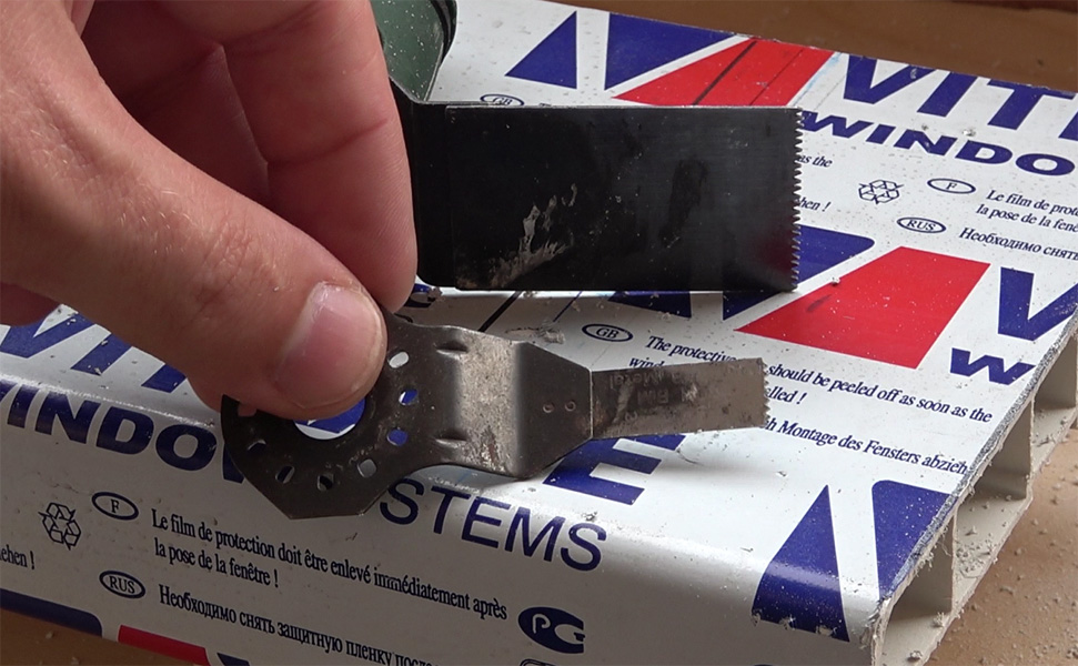Для таких случаев понадобится универсальный резак (в простонародье ротор ). С ним мы используем всего два полотна: 25 мм со средними зубьями и маленькая пилка 10 мм по металлу.