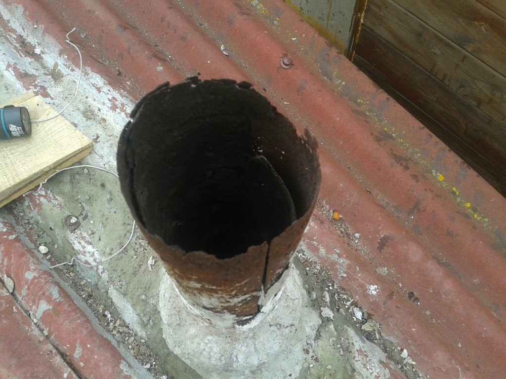 Если труба дымохода изготовлена из асбестоцемента, то утепление производится в следующем порядке: