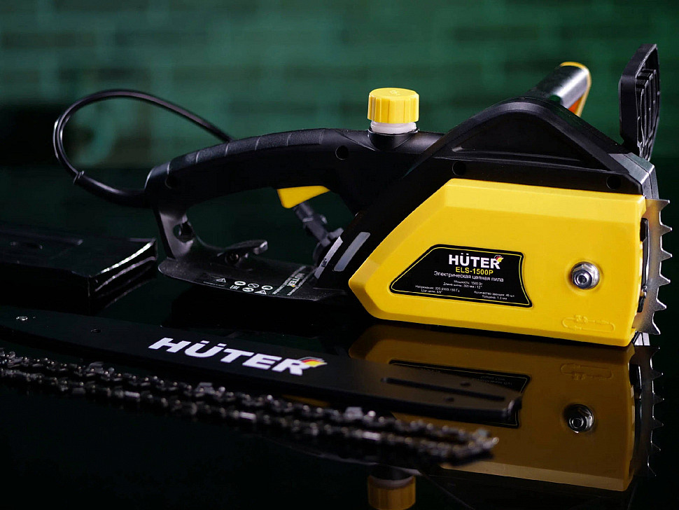 У компании-производителя HÜTER есть бензопила BS-62 мощностью двигателя 3300 Вт, с 76 звеньями на шине длиной 20 дюймов и толщиной звена 1,5 мм с шагом цепи 0,325 дюйма.