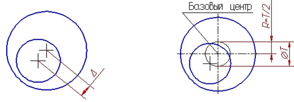 Отклонение от концентричности — отклонение от концентричности — расстояние в заданной плоскости между центрами профилей (линий), имеющих номинальную форму окружности.