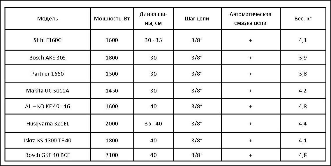 Чтобы правильно выбрать цепную электропилу, рекомендуется оценивать модели по следующим критериям: