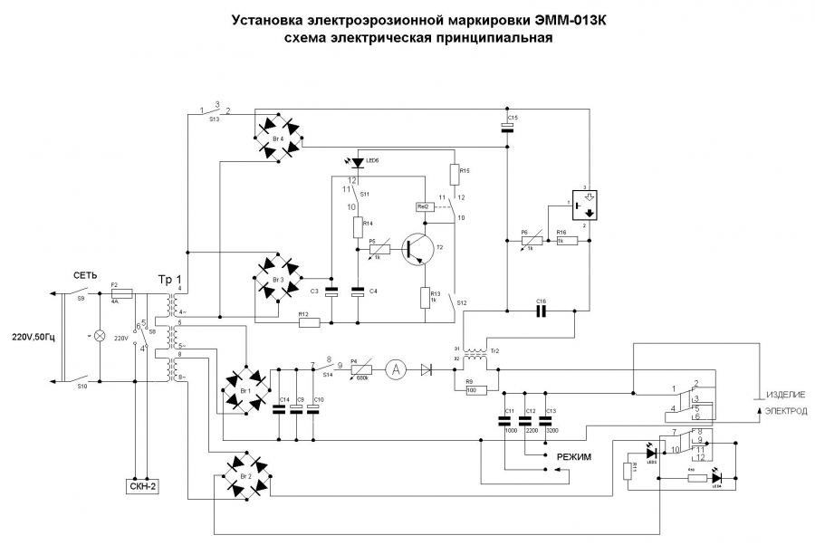 - Для различных типов основного инструмента потребуется менять мощность устройства и силу тока. При разных режимах работы принципиальная электрическая схема должна позволять проводить регулирование величины разряда на электроде. В ней нужно предусмотреть изменение частоты пульсации напряжения.