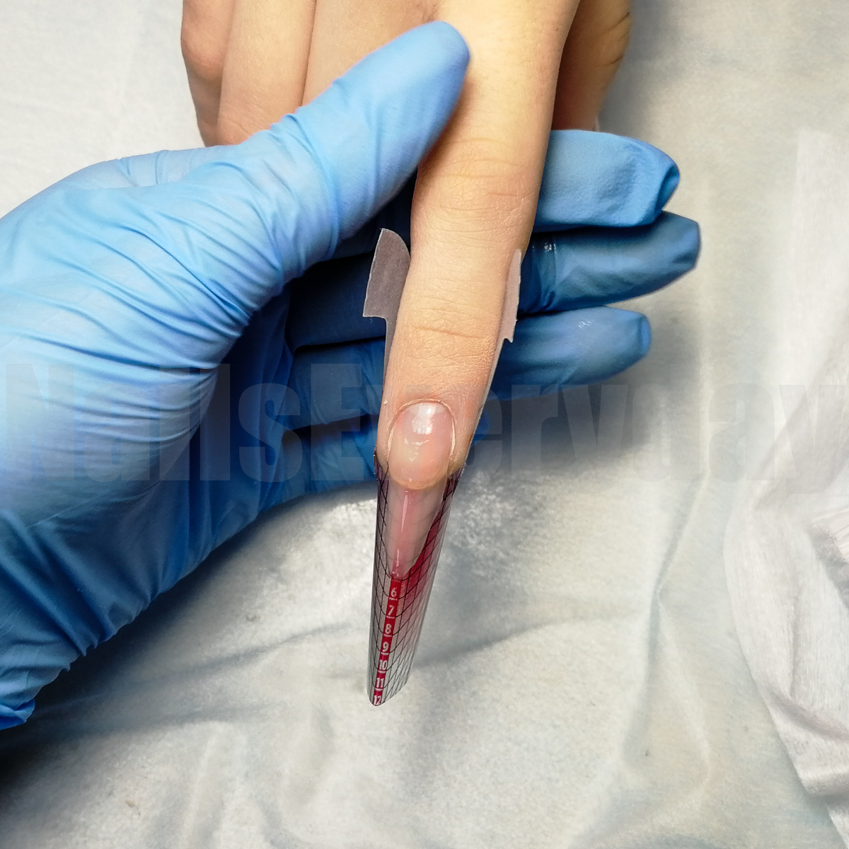- шаблон должен стать продолжением ногтя, четко попав в ;