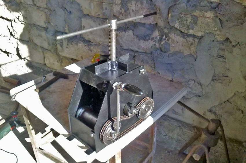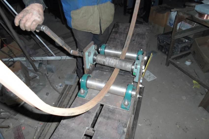Самодельные устройства для гибки профильного трубного проката, изготовленные по универсальным схемам, можно в дальнейшем подвергать модернизации, если в этом возникает необходимость. Например, их можно оснастить электрическим приводом или установить на них большее количество рабочих валков.