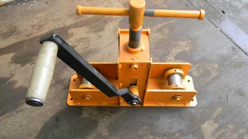 - Ручные, или механические. В таких конструкциях пользователь сам устанавливает нужный угол изгиба, а потом прокатывает трубу через валики для придания формы. К преимуществам трубогибов относят дешевизну и компактность.