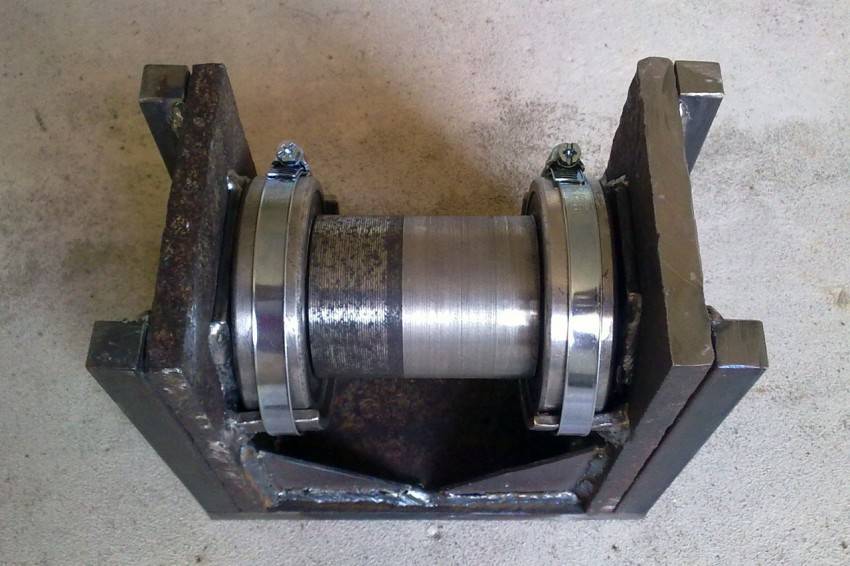 В первую очередь изготавливается основание или станина, для чего можно использовать трубы большого диаметра или стальные швеллеры.