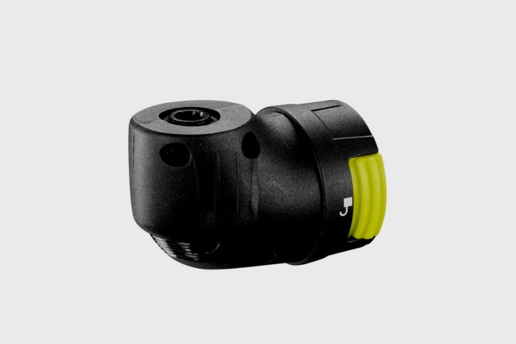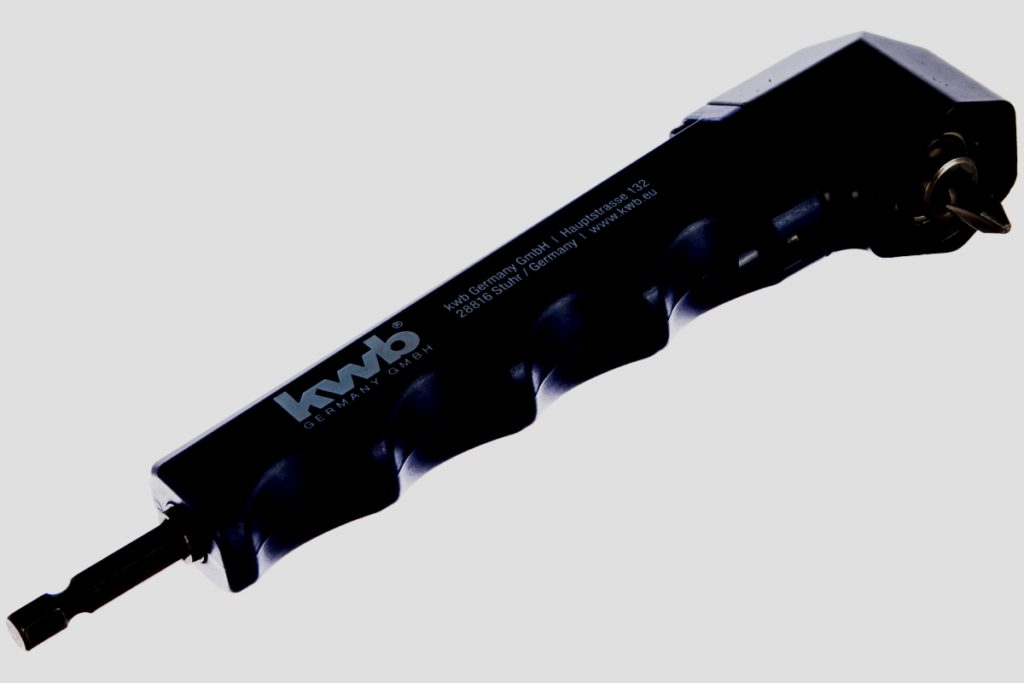 Это приспособление относится к категории быстросъемных. Имеет угловую форму, что позволит работать на труднодоступных участках. В основе лежит использование системы быстрого крепления. Может применяться как для осуществления левого, так и правого вращения. Диаметр посадочного квадрата – ¼ дюйма. Вес упаковки – 0,4 кг. Производится немецким концерном. Сборка осуществляется на территории Германии.