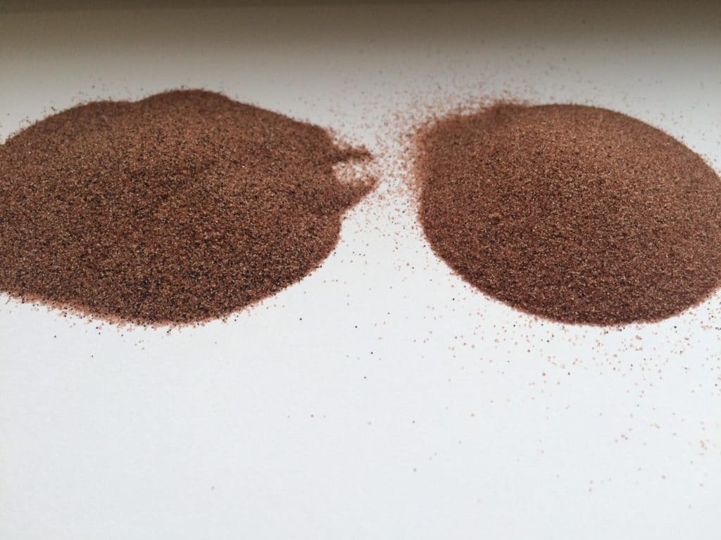 Среди большого количества различных песков, гранатовый отличается тем, что увеличивает эффективность и скорость выполнения работ при очистке различных поверхностей. Именно по этой причине им заменили кварцевый осадочный материал. Кроме очистки днища кораблей и фасадов зданий, данный абразив применяют для удаления следов радиоактивных заражений с различных поверхностей.