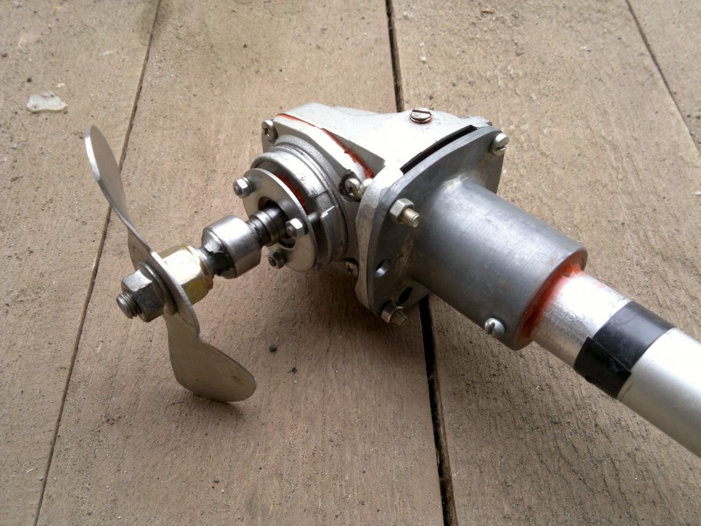 Также для самостоятельного изготовления лодочного мотора на базе триммера часто используется редуктор от болгарки, но с некоторыми доработками.