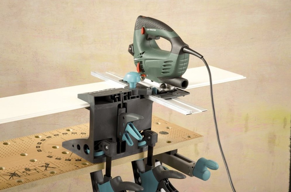 - Надежная фиксация выпиливаемого образца позволяет любые расстояния от кромки изделия.