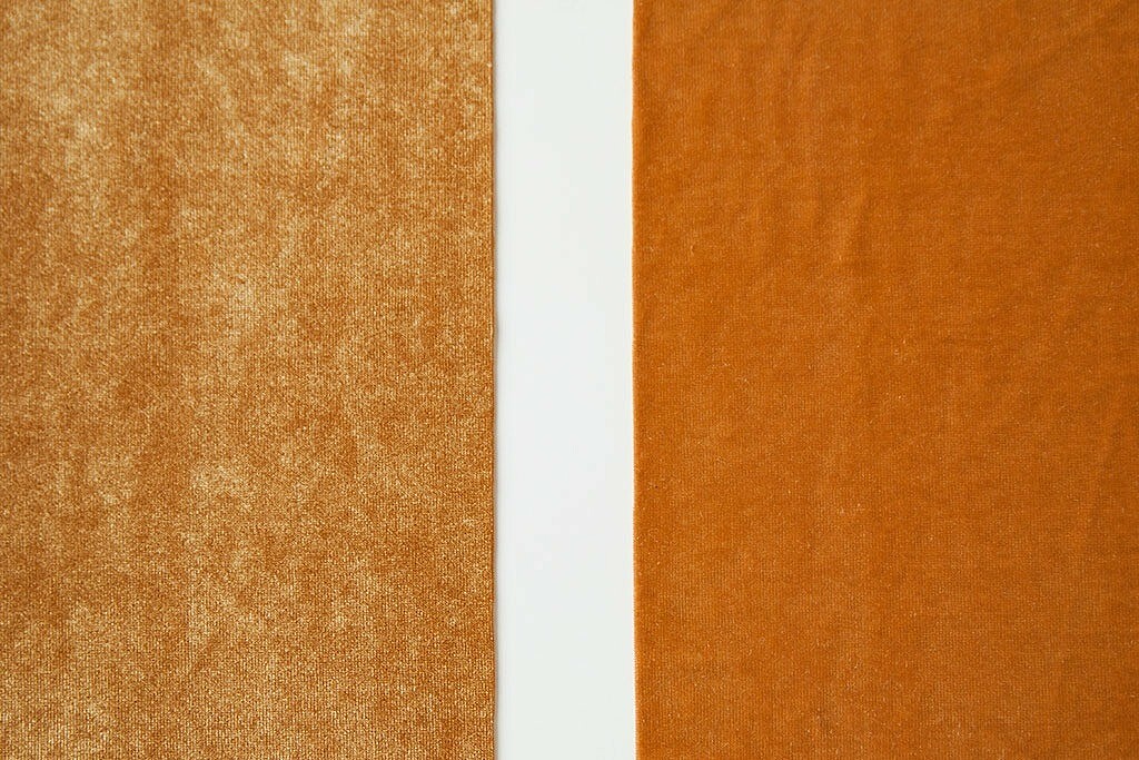 При разном направлении ворса один и тот же материал может выглядеть очень по‑разному! При раскрое бархата или вельвета детали выкладывают таким образом, чтобы ворс шел снизу вверх. Допустимо и обратное направление ворса, но этот вопрос следует решать в частном порядке в зависимости от качества материала и длины ворса: приложите ткань к себе и, глядя в зеркало, оцените, как выглядит ворс в том или ином направлении.