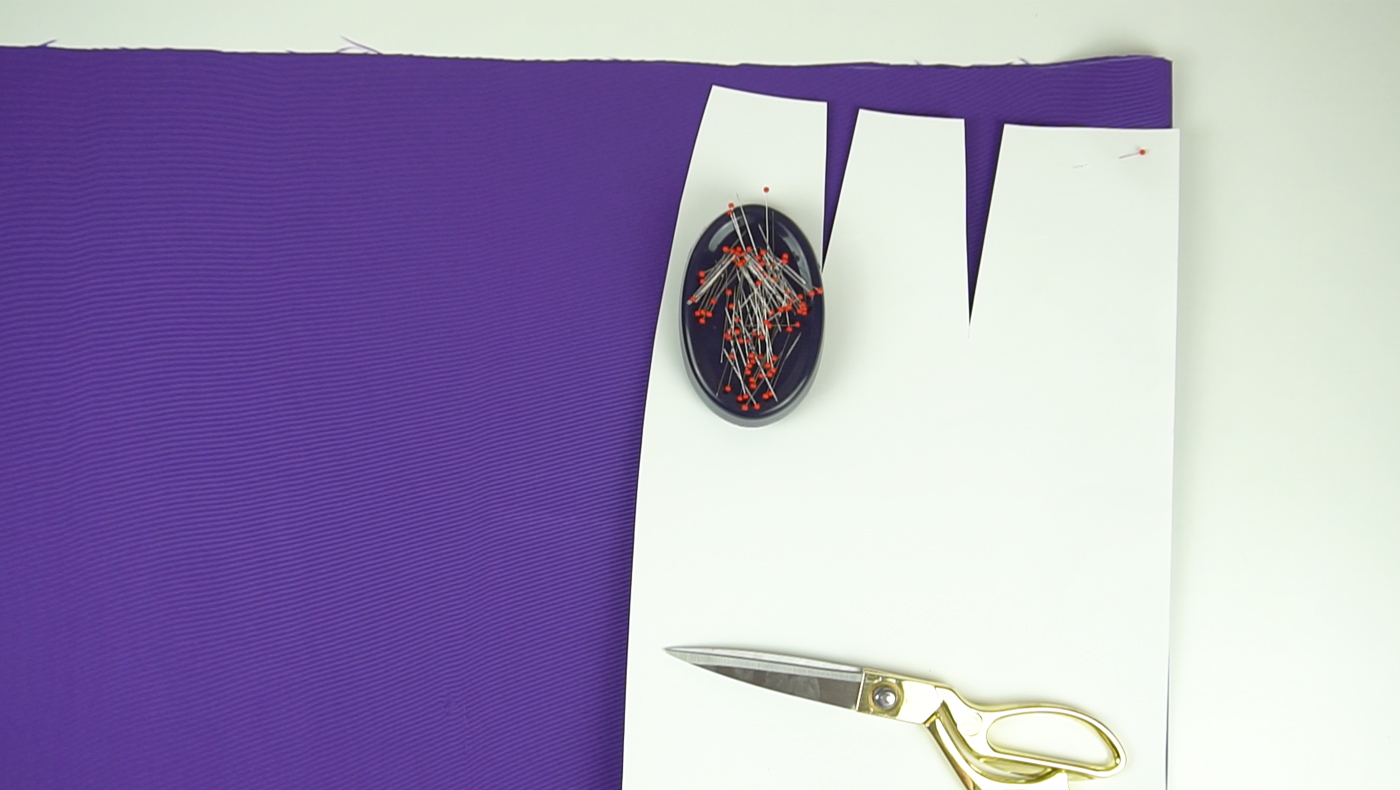 Приколите выкройку булавками, чтобы она не сместилась в процессе выкраивания.