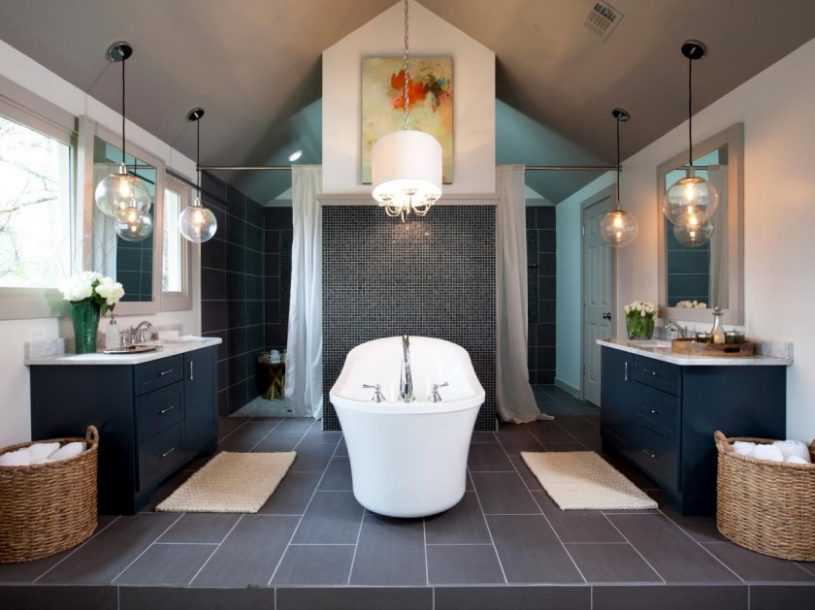 Размеры помещения и его форма, используемые отделочные материалы и цветовая гамма имеют значение, но определяющую роль играет стиль, который задает тон при выборе мебели и сантехники, цвета и фактур