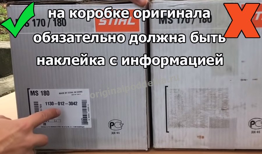 Поддельные бензопилы упаковываются в такие же коробки, что и оригинал. Однако большинство инструмента, произведенного кустарным способом, обладает одним и тем же номером. Разумеется, каждая товарная продукция компании Штиль имеет собственный идентификационный номер, позволяющий отследить страну изготовления, номер партии и прочую информацию.