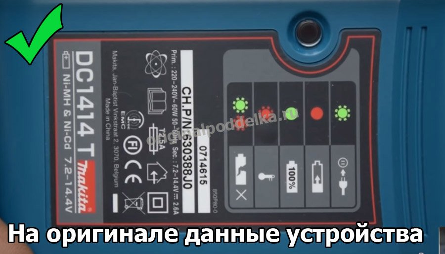 Оригинал имеет надпись Makita более тусклого цвета. В то время, как подделка прям режет глаза ярким красным. Теперь касательно маркировок: