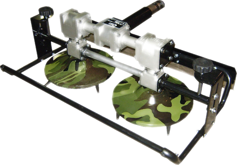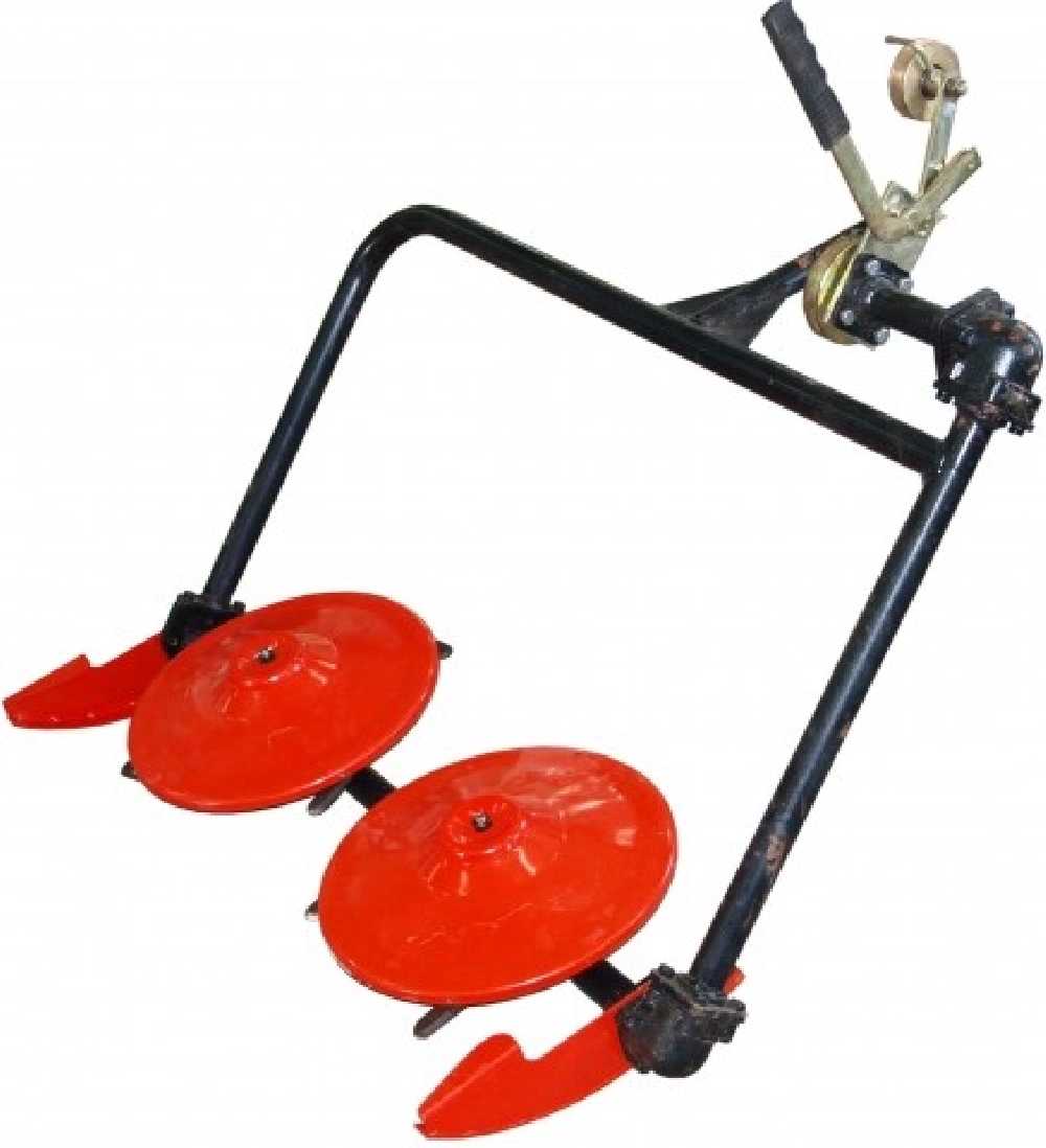 - Двухдисковый. смонтированы два диска, вращающиеся в разные стороны. Их устанавливают параллельно друг другу. Ширина захвата зависит от величины диаметров обоих.