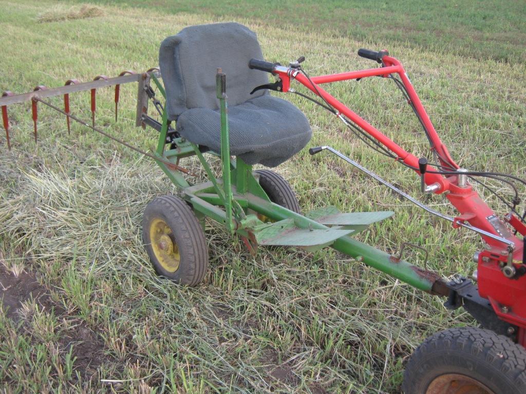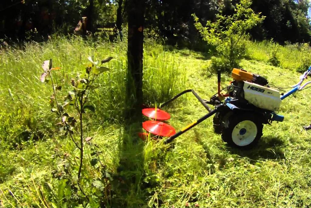 Само приспособление для кошения травы расположено с правой стороны и крепится к раме шарниром для поднятия и опускания полотна. Имеется сиденье для оператора и рычаги управления, с помощью которых производят наклон режущего органа. Благодаря этому можно легко обрабатывать обширные территории и садовые участки и лесополосы. Стоимость такого агрегата начинается от 50 тыс. рублей.