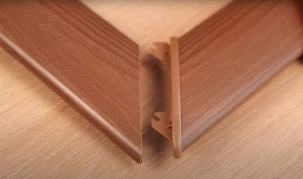 - Если при состыковке планок под углом 45 градусов произошли какие-либо ошибки, тогда их можно устранить шпатлевкой, которая после высыхания подкрашивается корректором в тон планок;