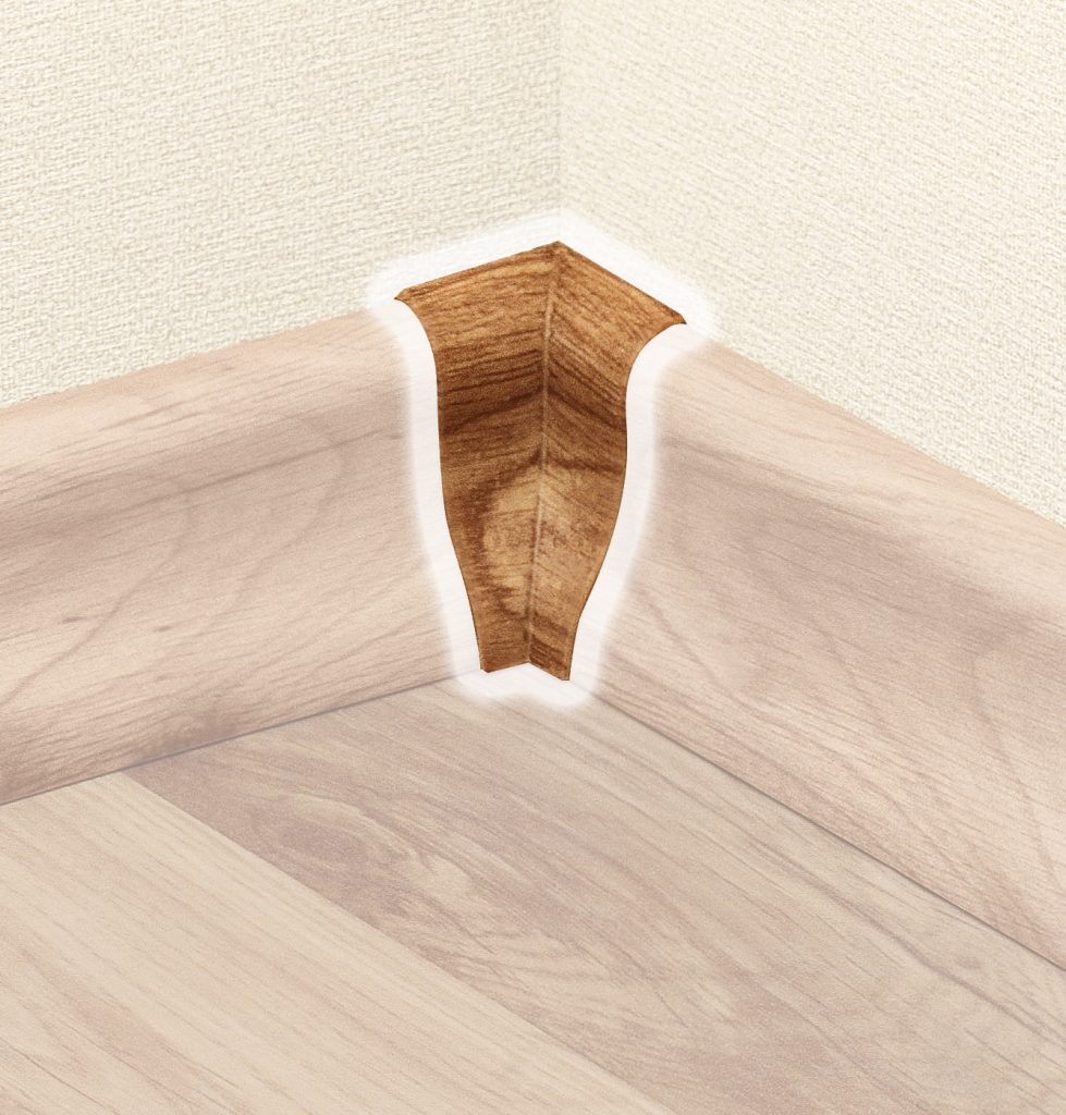 - Начинаем формировать угол из плинтуса, соединяя соседние элементы при помощи заглушек;