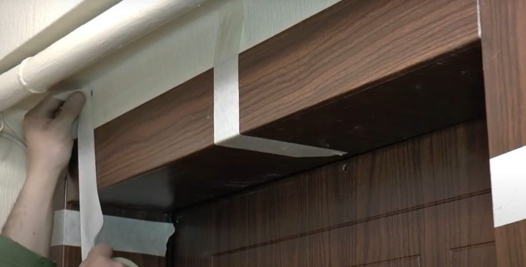 Если дверь находится в углу, установка производится буквой Г. При желании можно распилить элемент вертикально и использовать узкую планку.