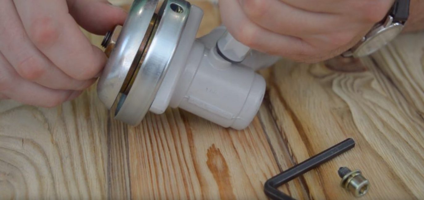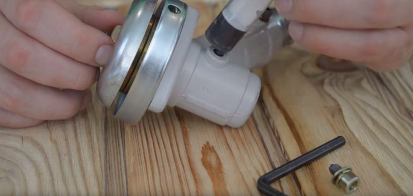 Для того, чтобы получить доступ к редуктору, его следует открыть. Сделать это достаточно просто – нужно при помощи шестигранного ключа открутить редукторный болт. Этот болт у всех мотокос находится в одном и том же месте – непосредственно возле рабочего органа.