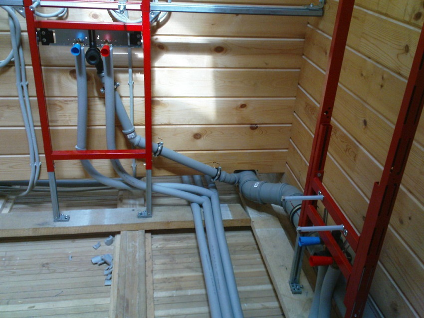 Внутренние инженерные коммуникации лучше прокладывать во время возведения дома, поскольку тогда легче создавать отверстия в стенах и маскировать отдельные участки трубопровода. В процессе монтажа труб непременно следует соблюдать уклон, так как в дачных постройках редко когда устанавливают насосное оборудование и перемещение сточной жидкости осуществляется самотеком. Если выполняется канализация в деревянном доме своими руками, необходимо заранее продумать все возможные проблемы и нюансы.