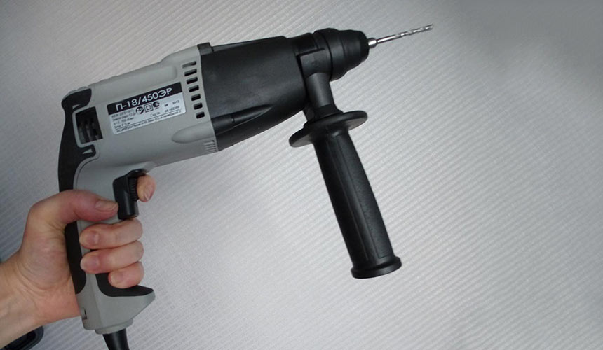 Теперь разберёмся, как сверлить бетонную стену. Для этого возьмём перфоратор, как явного победителя импровизированных соревнований.