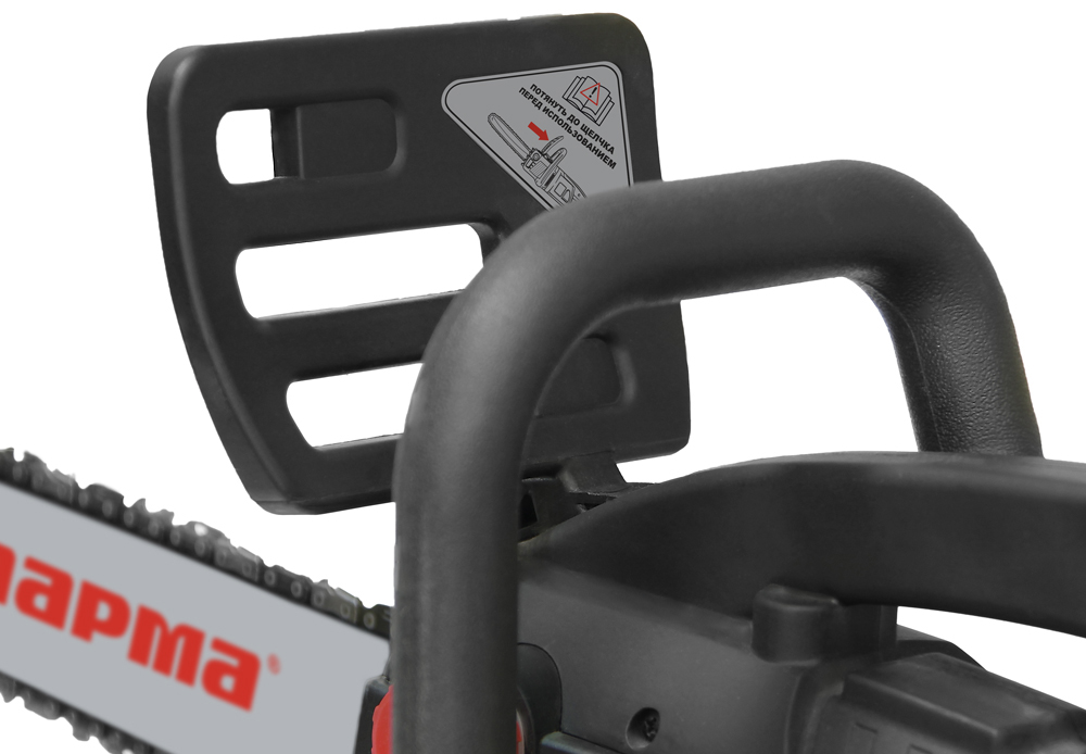 - аварийная остановка цепи – в случае неудобного пользования электропилой появляется опасность отдачи инструмента, в течение 0,12 с срабатывает экстренный тормоз;