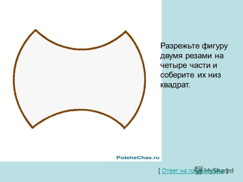 Разрежьте фигуру двумя резами на четыре части и соберите их низ квадрат. Ответ на головоломку