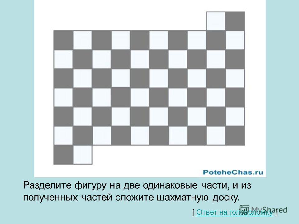 Разделите фигуру на две одинаковые части, и из полученных частей сложите шахматную доску. Ответ на головоломку