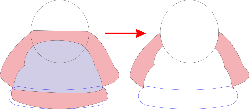 Для примера возьмем три объекта (три фигуры), бороду, туловище и оторочку шубы. Вычитаем центральную часть туловища из большей части, из получившейся фигуры вычитаем бороду и оторочку шубы.