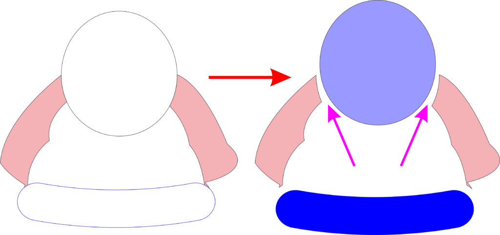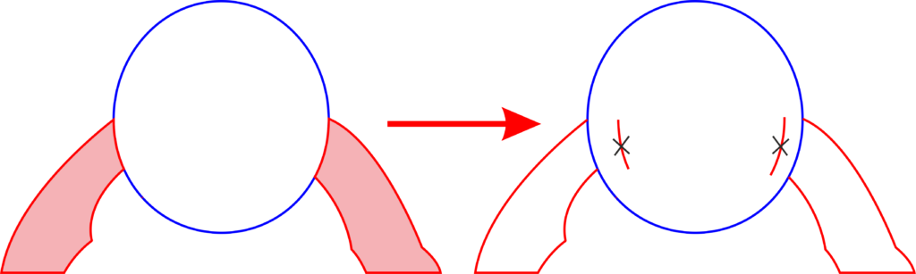 Очень хорошо видно, как дуга верхней части рукава накладывается на участок бороды, расположенной параллельно проекции этой дуги, в этом месте луч лазера пройдет дважды, очерчивая бороду и очерчивая рукав.