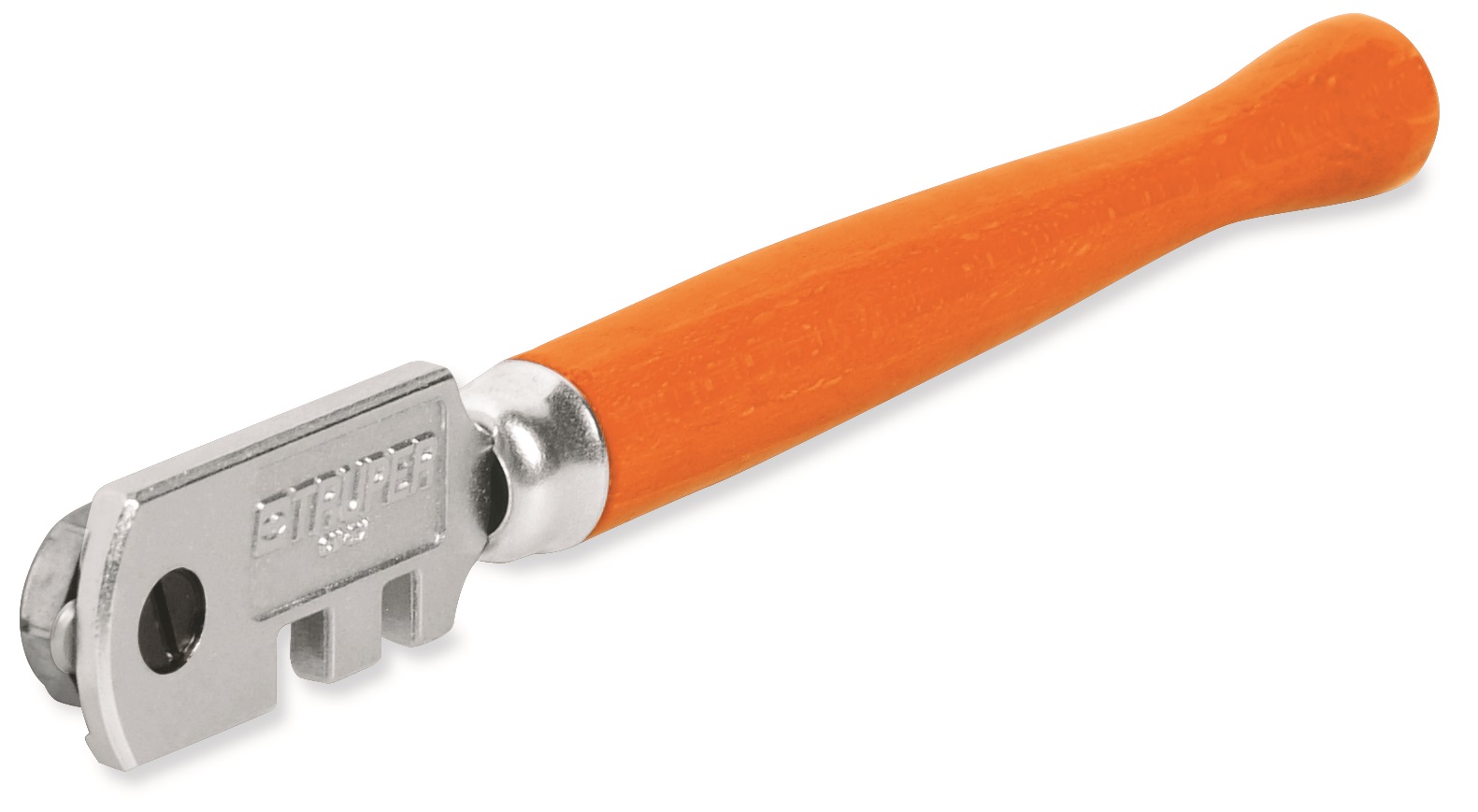 Ручной плиткорез отличается простой использования, позволяет быстро убрать лишний участок плитки. Технология работы механичного инструмента достаточно проста: на плитке рисуется линия, после чего изделие фиксируется и по нему идет режущий ролик, делящий керамогранит на две части. В числе минусов — необходимость дополнительной шлифовки краев. К тому же при помощи данного инструмента невозможно отрезать полоску, размер которой меньше 0,6 см.