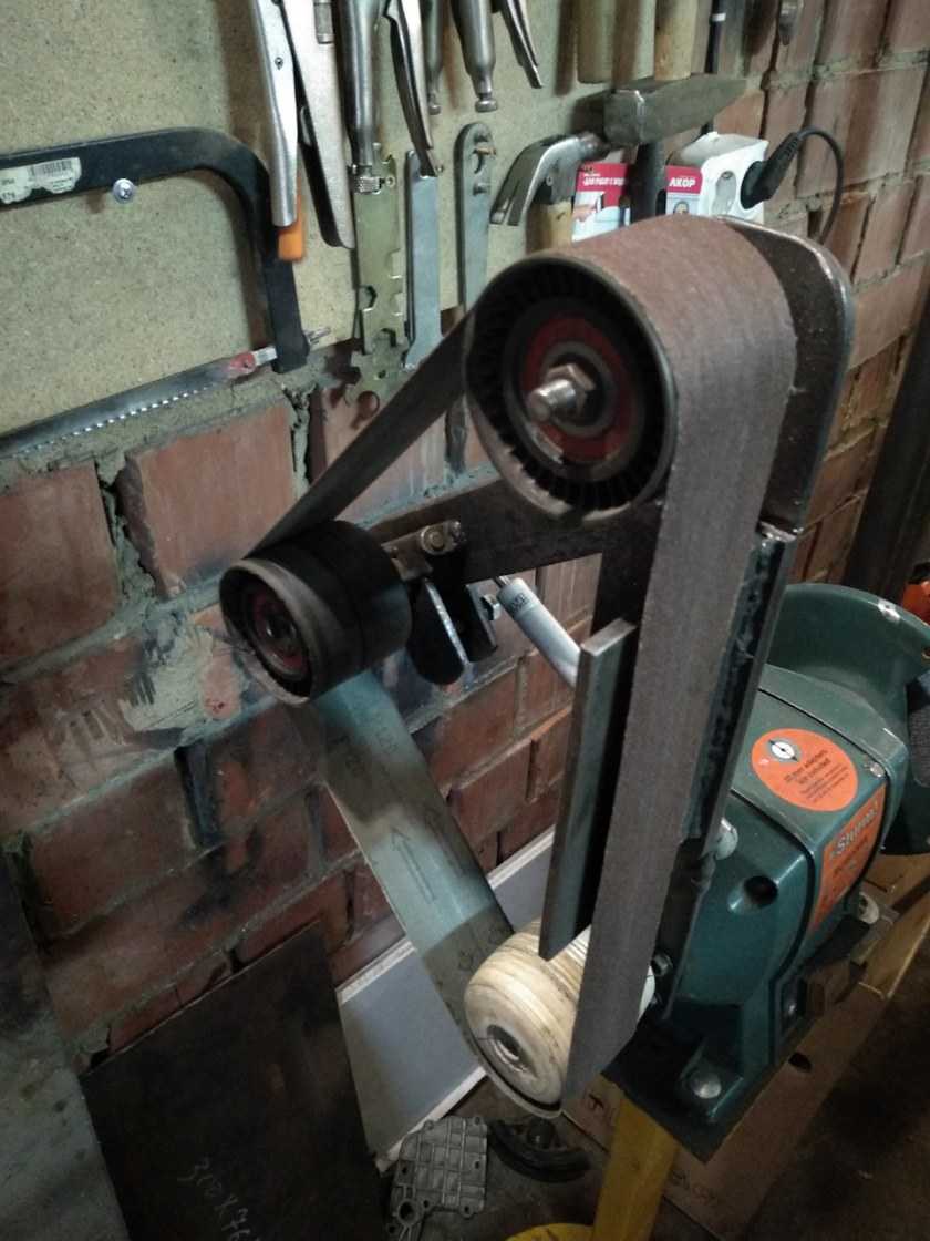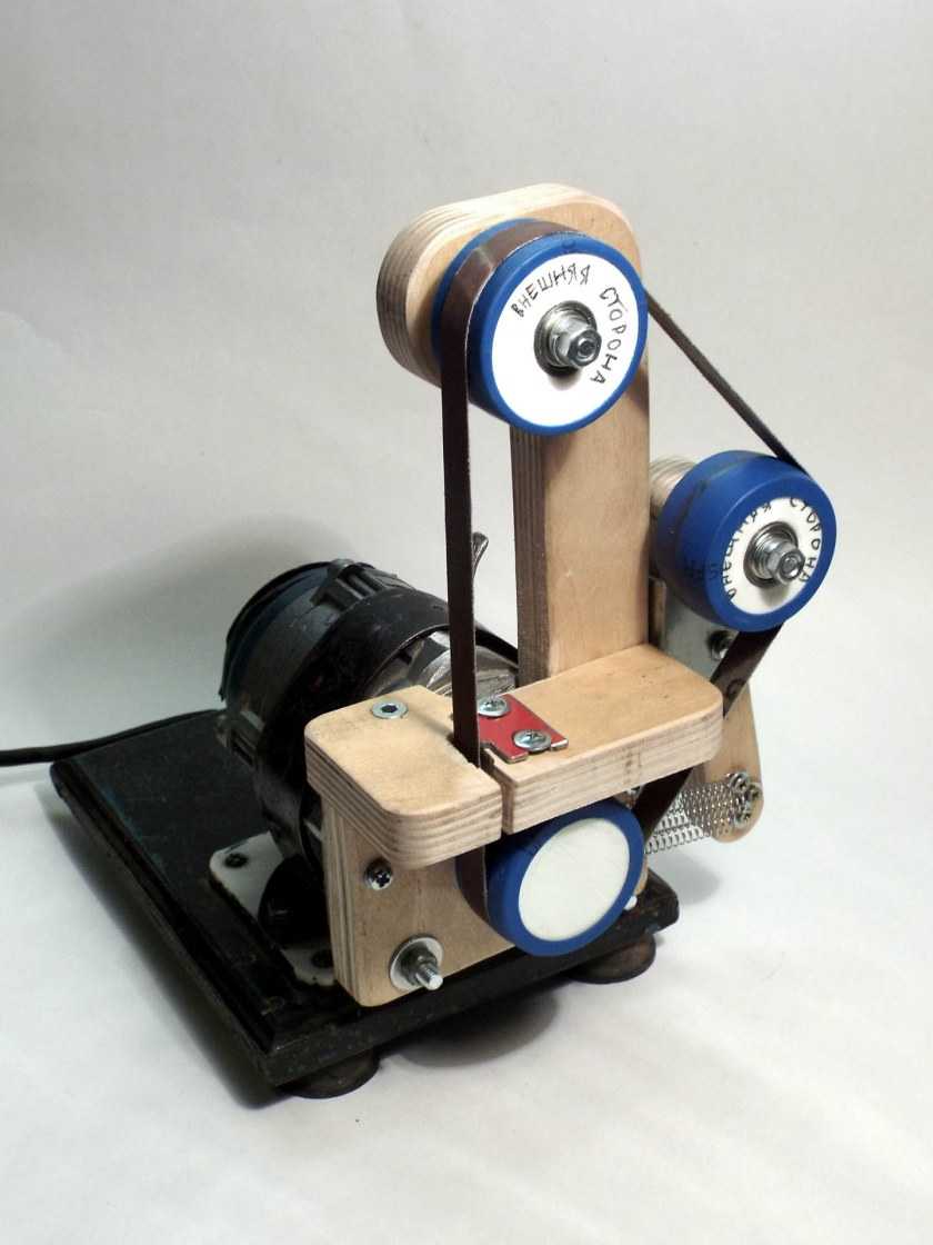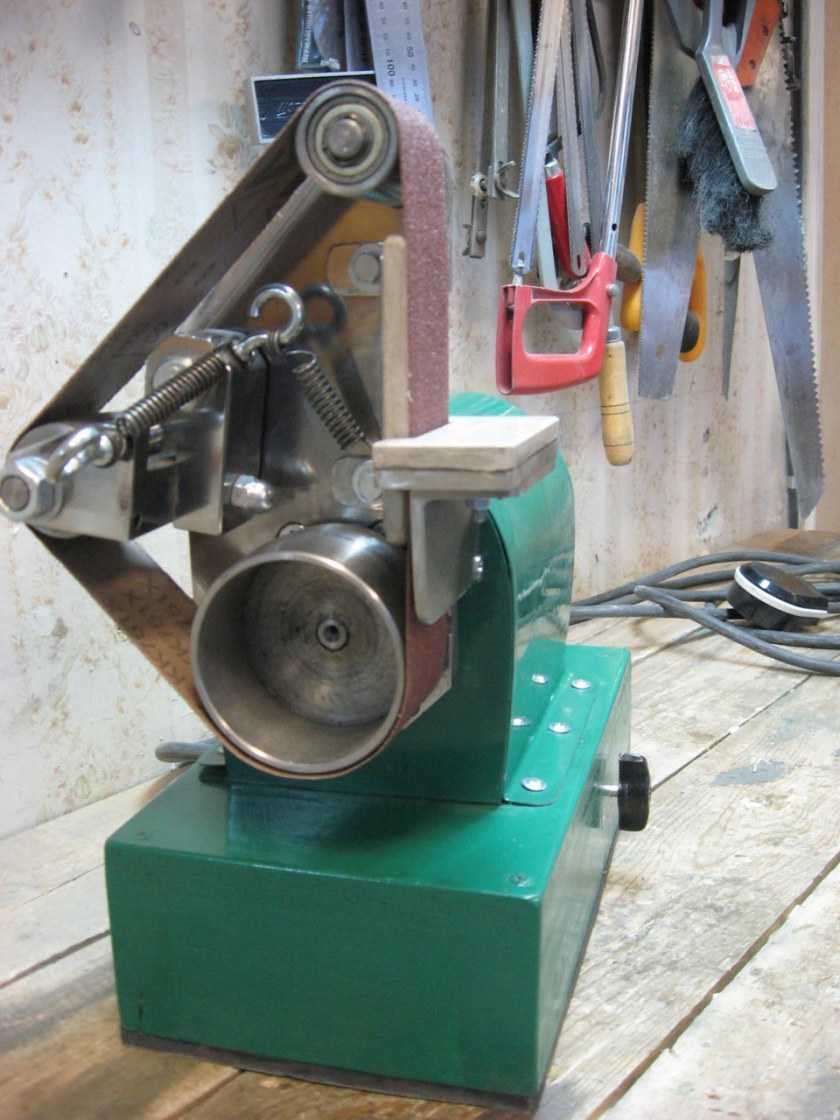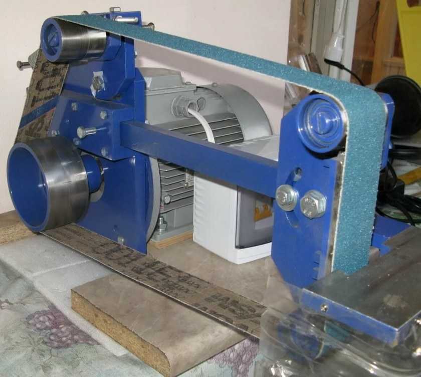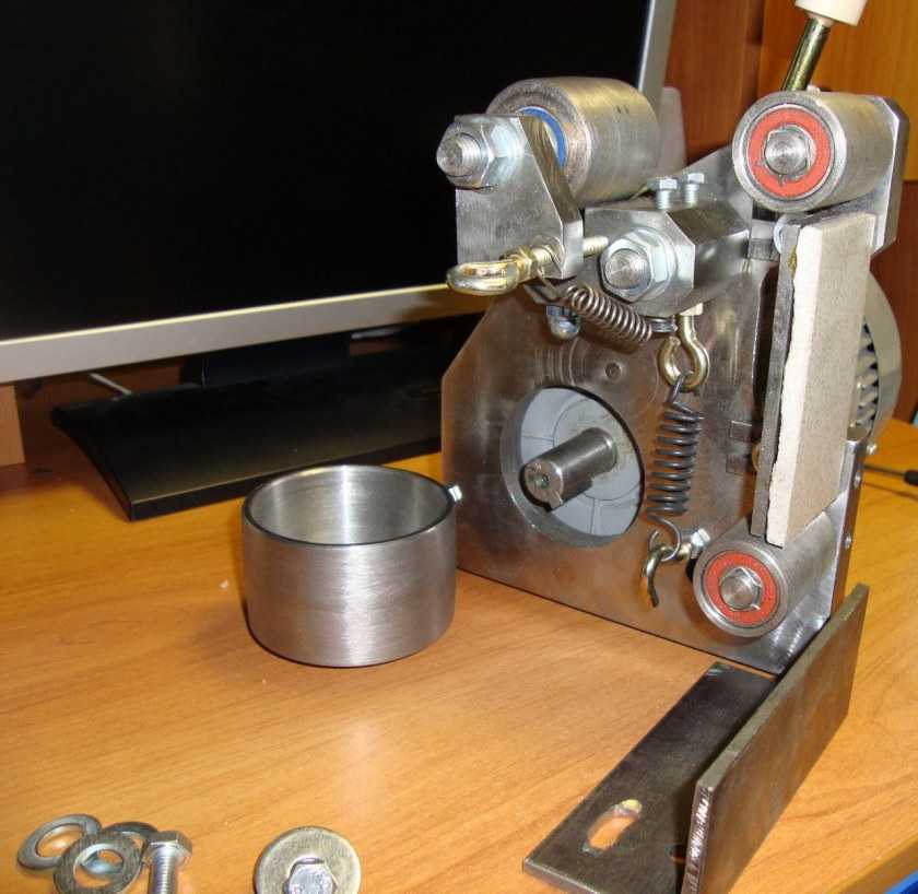 При самостоятельной сборке гриндера важно расположить ролики строго перпендикулярно над друг другом, чтобы избежать перекосов ленты, что может привести к её обрывам. От выбора ленты зависит скорость и качество обработки изделий