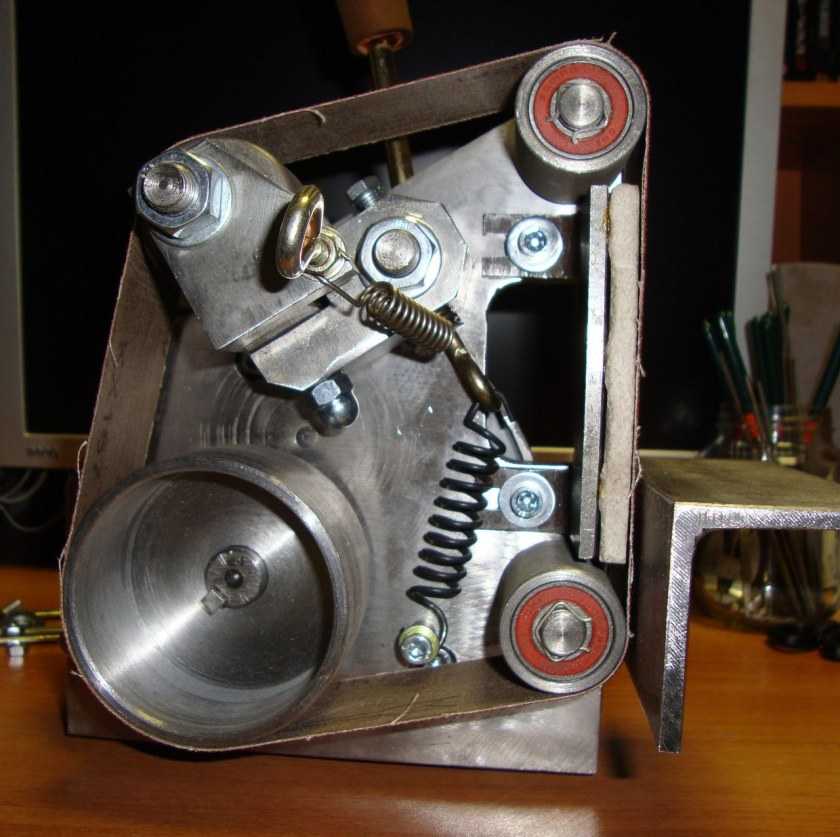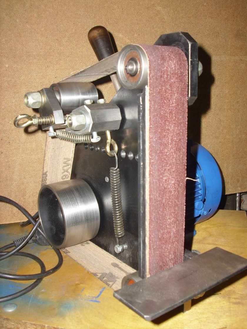 Ленточные шлифовальные аппараты содержат пружину, которая выполняет очень важную функцию: натягивает просевшую в результате износа ленту. Смена ленты производится несколько раз даже при обработке небольшой заготовки. Это следует запомнить.