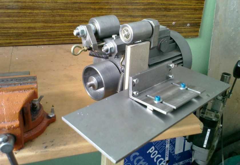 Выточить ролики, и только после этого приступить к сборке механизма. Получилась универсальная приставка, в качестве силового агрегата которой можно использовать не только болгарку, но и другой подходящий электродвигатель. Готовый вид представлен на фото ниже.