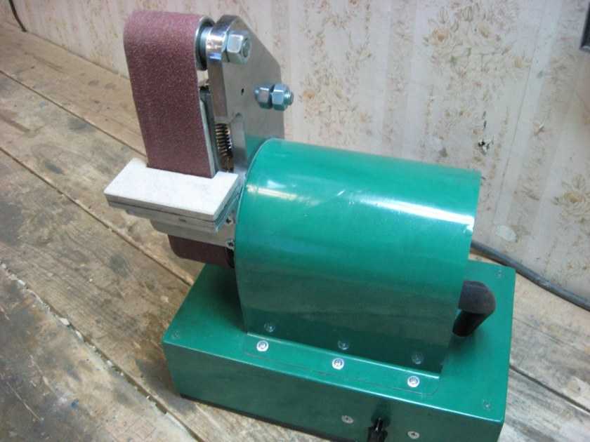 В сети интернет встречается информация о гриндерах сделанных с применением электродвигателей от старых стиральных машин. Такие электродвигатели маломощные и мало оборотистые. Чаще всего это 180 ватт и1400 оборотовмин. Таким гриндерам, как правило не хватает скорости движения ленты и мощности двигателя, поэтому на них можно выполнять нетяжелые работы, например, заточка ножей или обработка небольших деревяшек. На что-то более серьезное они не рассчитаны.