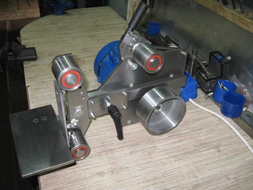 При самостоятельной сборке гриндера важно расположить ролики строго перпендикулярно над друг другом, чтобы избежать перекосов ленты, что может привести к её обрывам. Совет! Прежде чем определиться с размерами ленты и шириной роликов, прикиньте, какие поверхности вы планируете обрабатывать, их габариты и объёмы работ