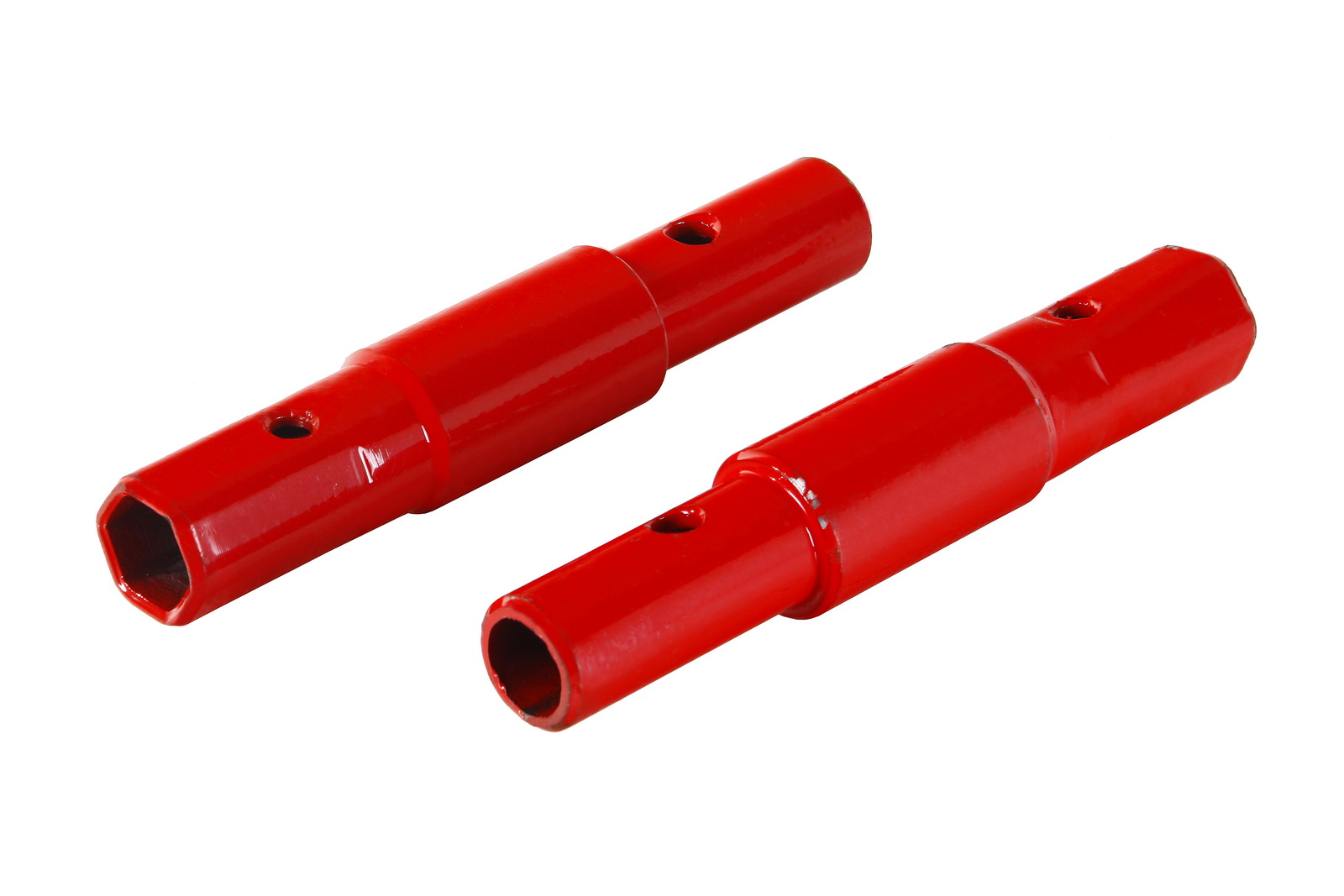 Удлинители осей позволяют существенно расширить колёсную базу мотоблока. С их помощью мотоблок будет более устойчив при любой ширине колеи, а также существенно увеличивается балансировка. Можно добавить дополнительные колеса с каждой стороны, что увеличит проходимость или создаст ее там, где она практически невозможна.