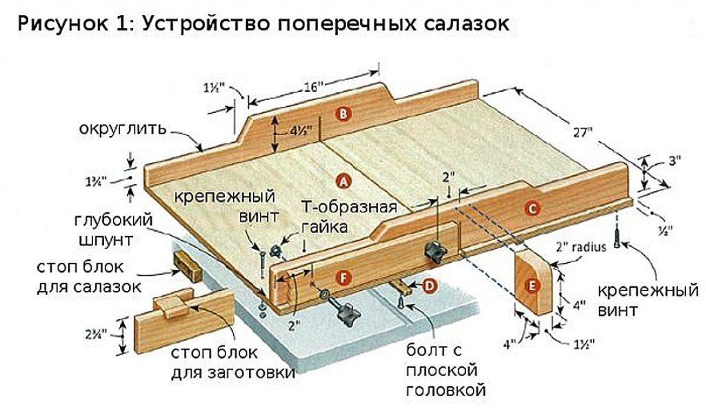 - Размер основания салазок (A), соответствует размерам циркулярного стола в мастерской, рисунок 1.