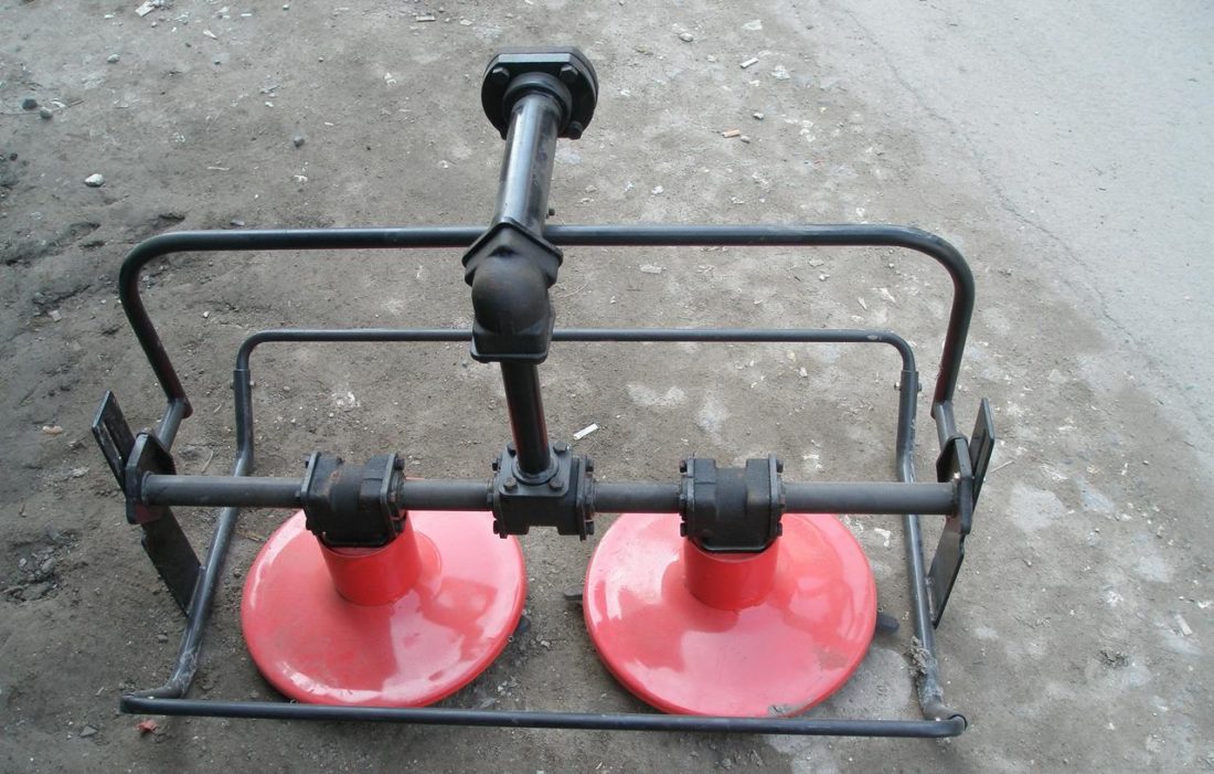 Когда все отдельные запчасти роторной косилки к мотоблоку собраны, их можно соединять вместе. Диски присоединяются к уже готовой раме. После этого выполняется связь между валом отбора мощности мотоблока и рабочими элементами. При этом необходимо четко соблюдать направление движения дисков. Они должны вращаться в разные стороны, то есть навстречу друг другу. Делается это с той целью, чтобы скошенная трава складывалась в ряд, а не разбрасывалась по всему участку.